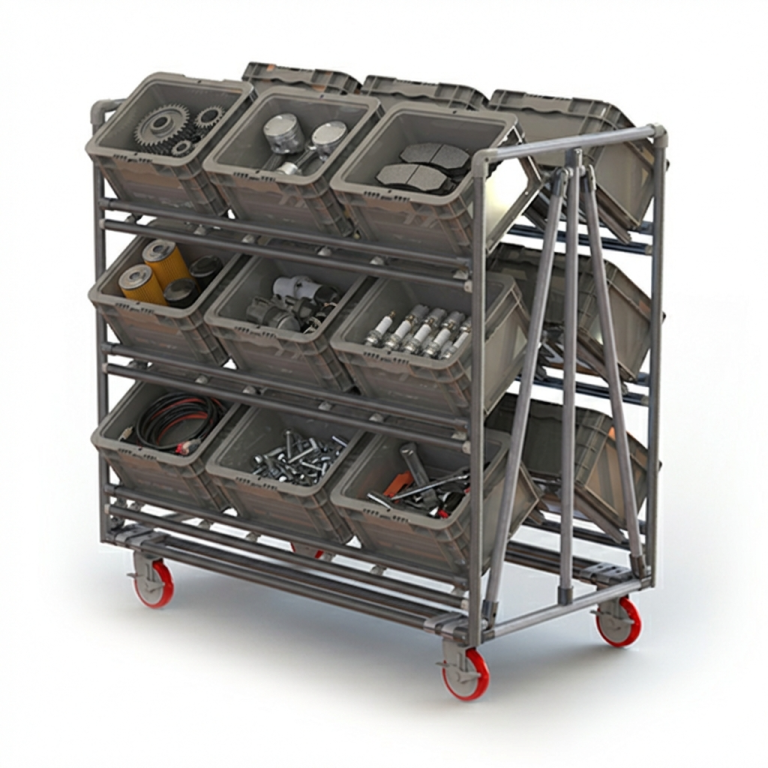 Custom rack and shelving options for secure storage of your odd shaped parts and unique organizational needs.