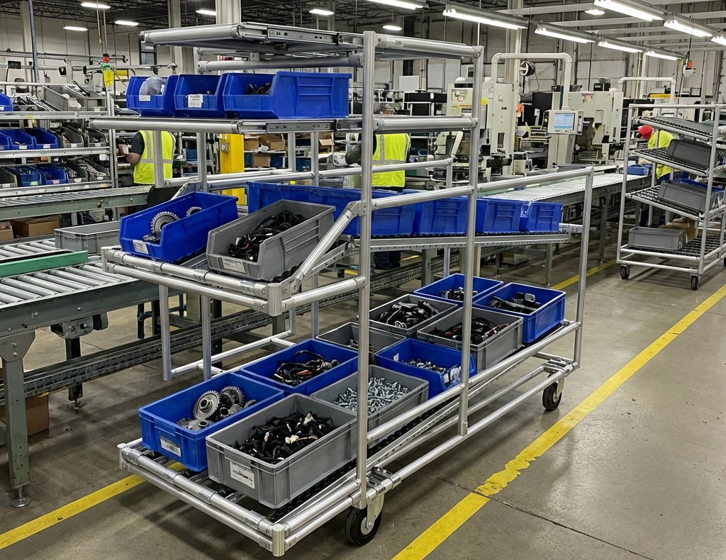 Line-side FIFO flow systems designed for efficient material delivery on the production floor.