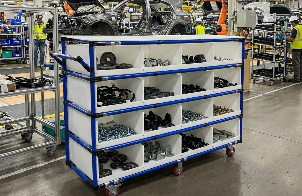 Unlike generic utility carts or warehouse trolleys, IPS modular push carts are designed specifically for line-side use, enabling smooth delivery of parts and materials where they are needed most.