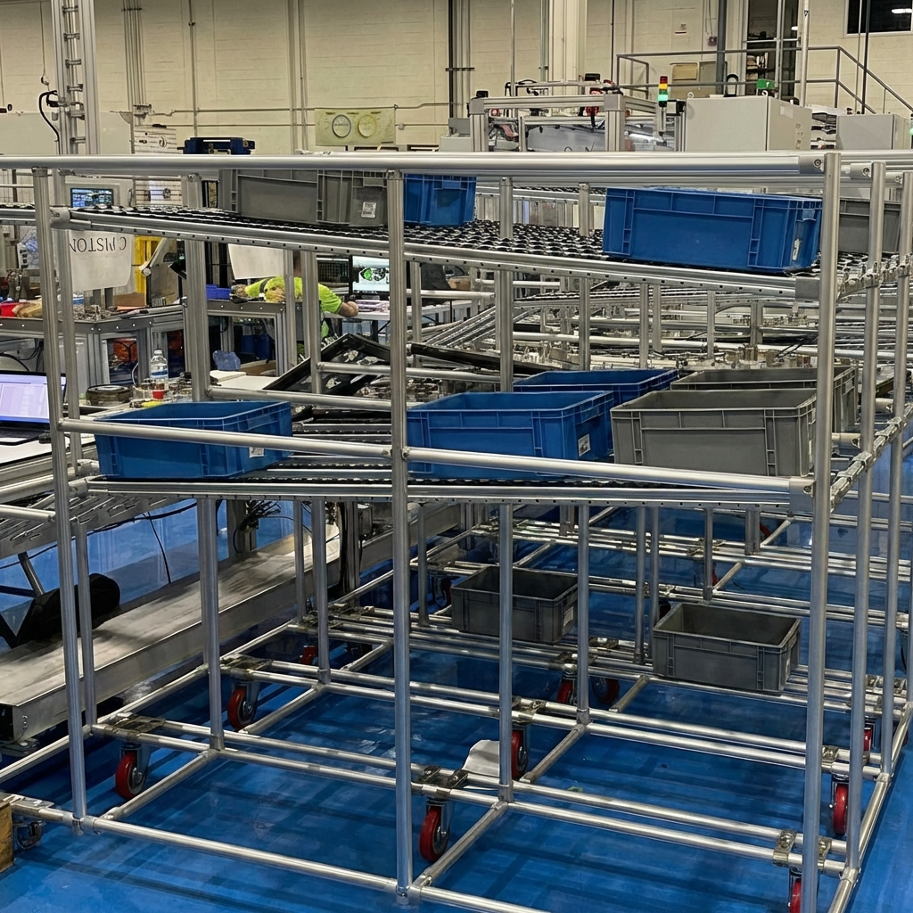 Our racks are built using industrial-grade aluminum profiles and connectors, allowing layouts to be easily adjusted as products, volumes, or processes change.